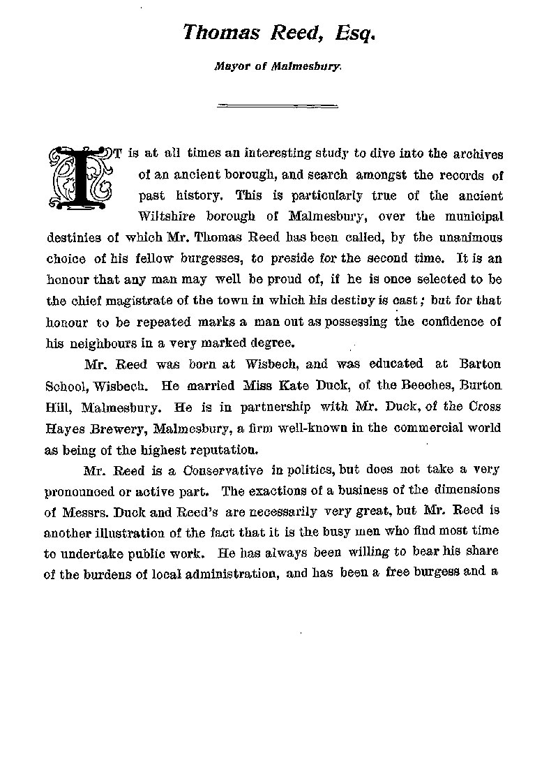 Page 120 Biography of Thomas Reed, Mayor of Malmesbury.