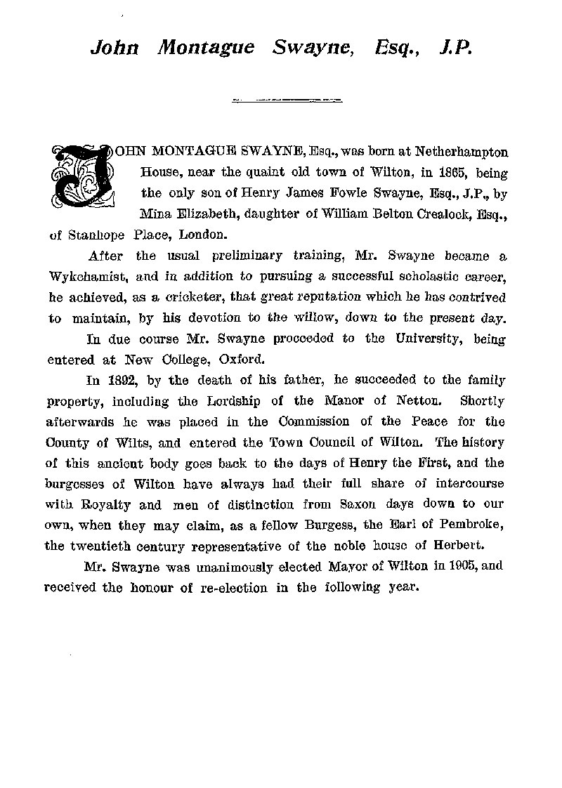 Page 134 Biography of John Montague Swayne of Wilton.