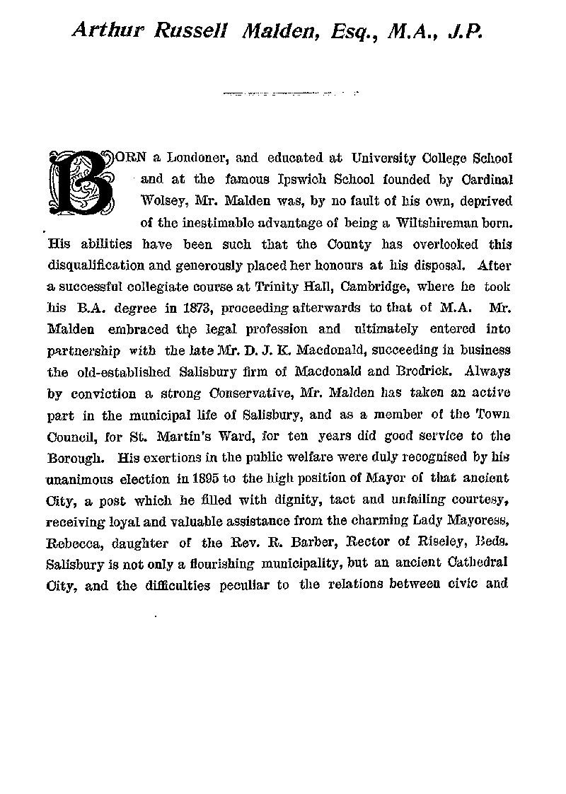 Page 144 Biography of Arthur Russell Malden of The Close, Salisbury.
