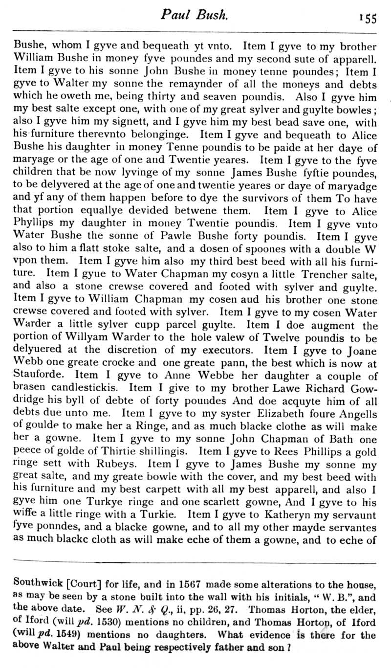 Chapter 5 Paul Bush, last rector of Edington, Bush Family; Feet of Fines for Wiltshire; Quakerism in Wiltshire; Horton Wills; Goddard of Sedgehill; Queries; Replies; Harris, Eyre and Dauntsey; Notes on Books; Review of The Genealogist Magazine.