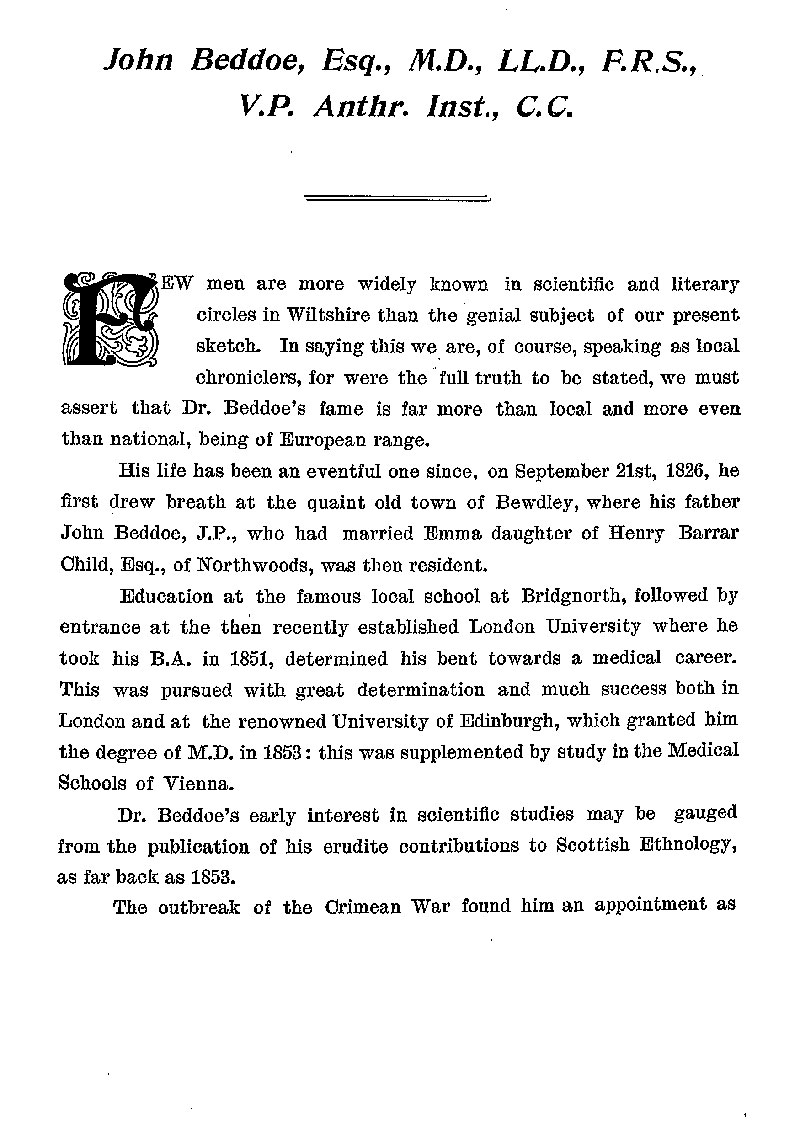 Page 146 Biography of John Beddoe of The Chantry, Bradford on Avon.