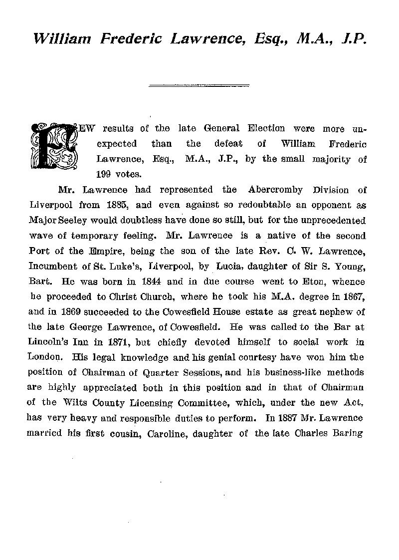 Page 152 Biography of William Frederic Lawrence of Cowesfield House, Whiteparish.