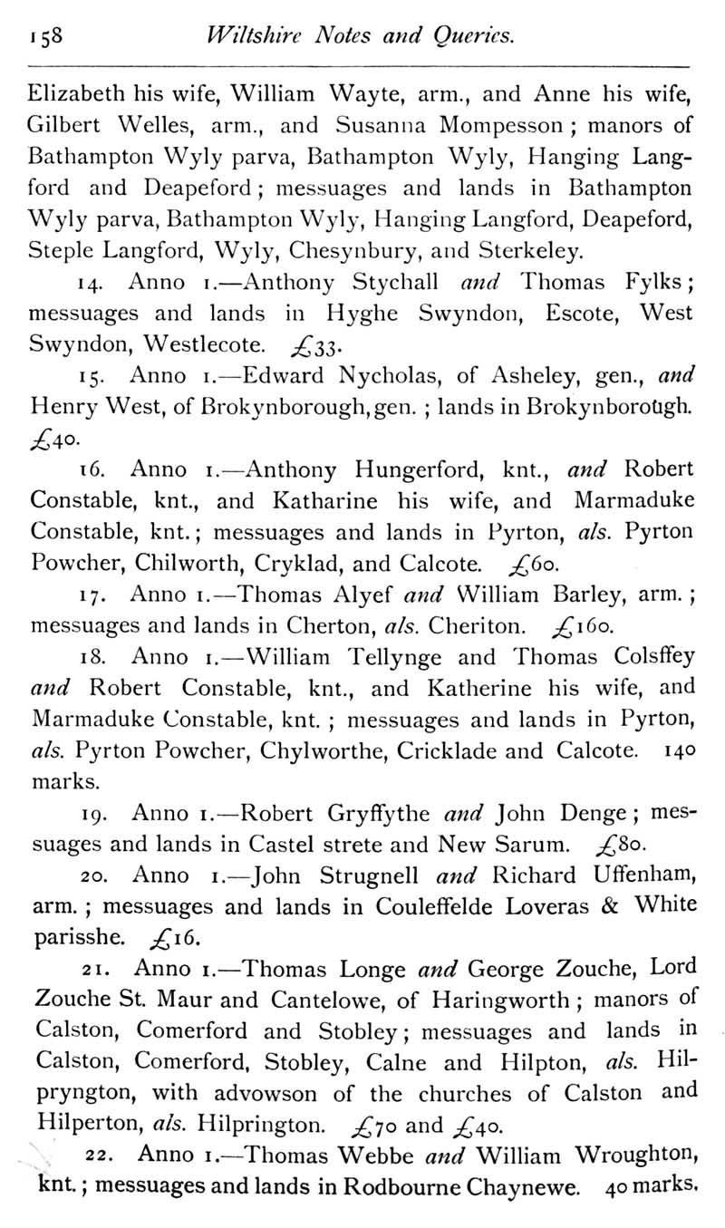 Chapter 5 Paul Bush, last rector of Edington, Bush Family; Feet of Fines for Wiltshire; Quakerism in Wiltshire; Horton Wills; Goddard of Sedgehill; Queries; Replies; Harris, Eyre and Dauntsey; Notes on Books; Review of The Genealogist Magazine.