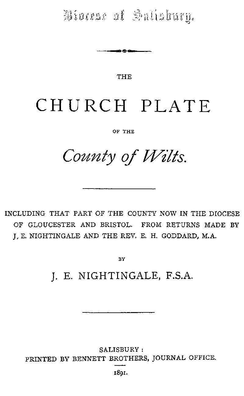 Book 30 The Church Plate of the County of Wilts. by James E. Nightingale. 1891