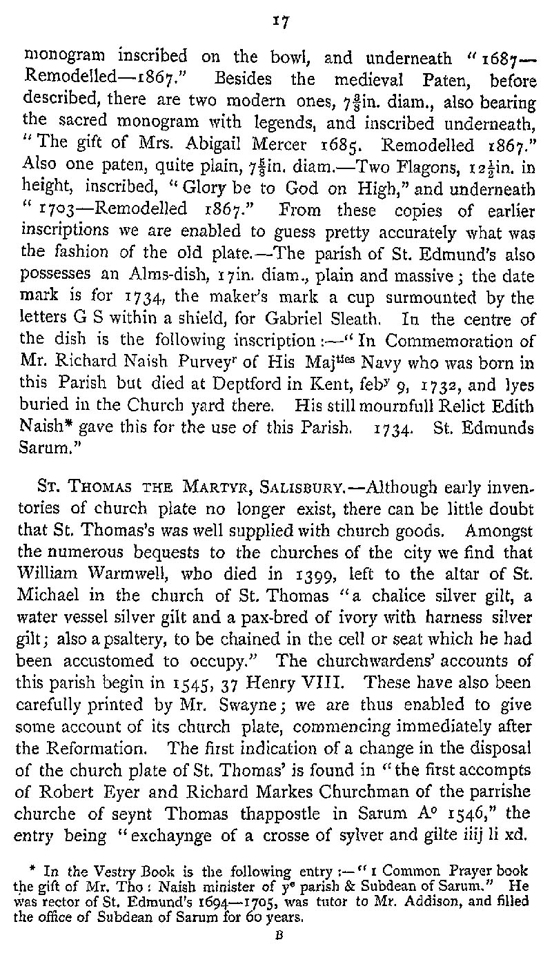 Page 37 Church plate in St. Edmund's Church, Salisbury and in St. Thomas's Church, Salisbury.