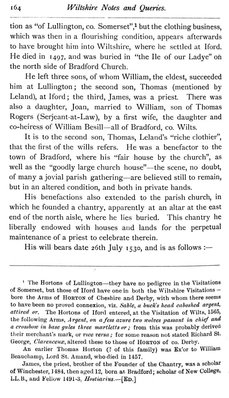 Chapter 5 Paul Bush, last rector of Edington, Bush Family; Feet of Fines for Wiltshire; Quakerism in Wiltshire; Horton Wills; Goddard of Sedgehill; Queries; Replies; Harris, Eyre and Dauntsey; Notes on Books; Review of The Genealogist Magazine.