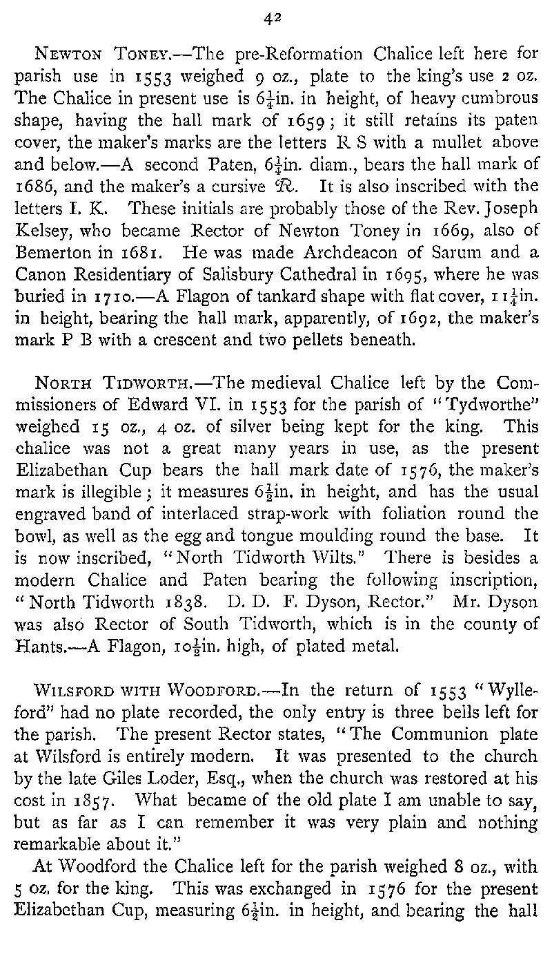 Page 67 Church plate in Newton Tony Church, North Tidworth Church and Wilsford with Woodford Church.
