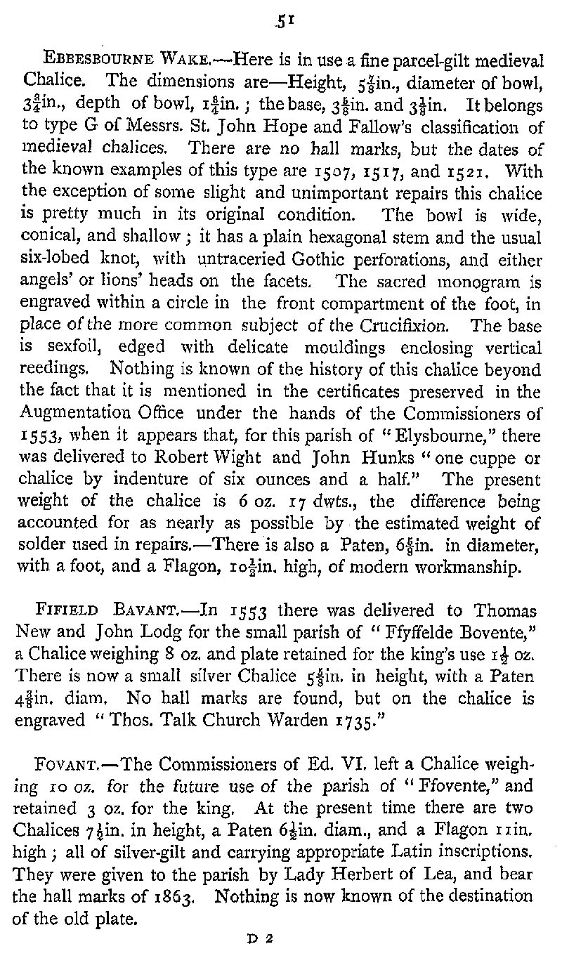 Page 78 Church plate in Ebbesbourne Wake Church, Fifield Bavant Church, and Fovant Church.
