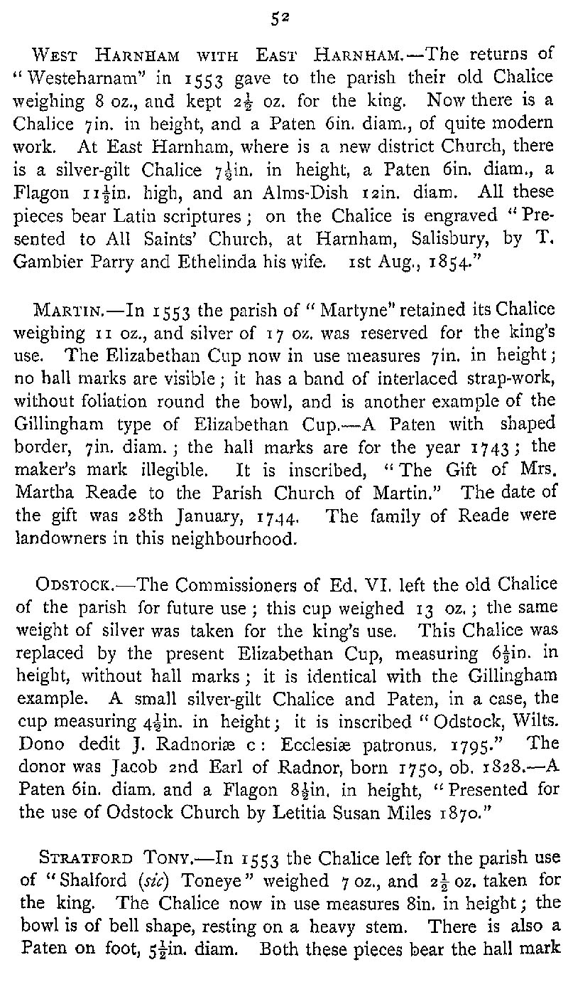 Page 79 Church plate in West Harnham with East Harnham (Salisbury), Martin Church (now in Hampshire), Odstock Church, and Stratford Tony Church.