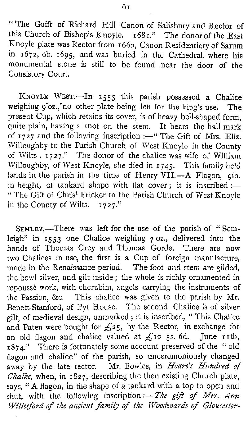 Page 89 Church plate in East Knoyle Church, West Knoyle Church, and Semley Church (Sedgehill and Semley).