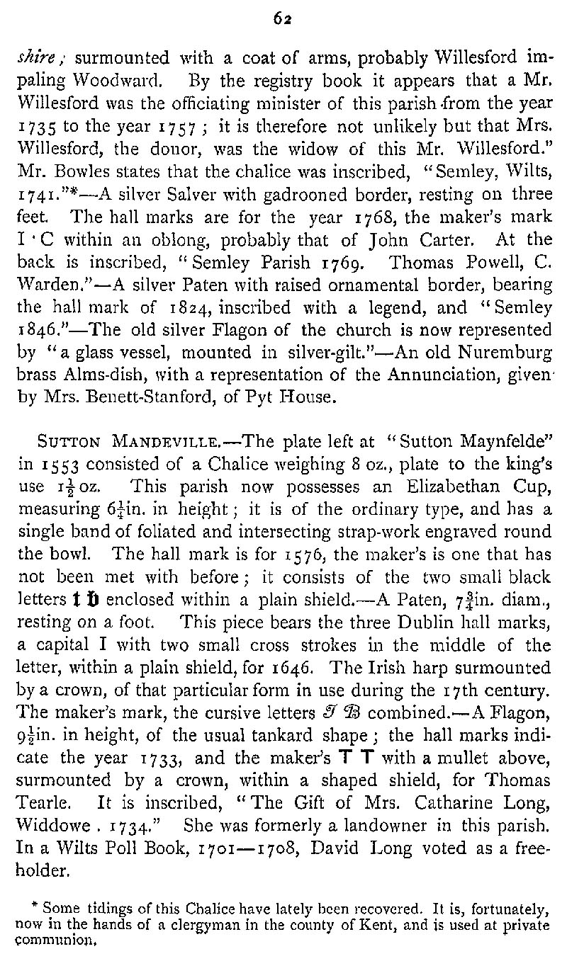 Page 90 Church plate in Semley Church (Sedgehill and Semley), and Sutton Mandeville Church.