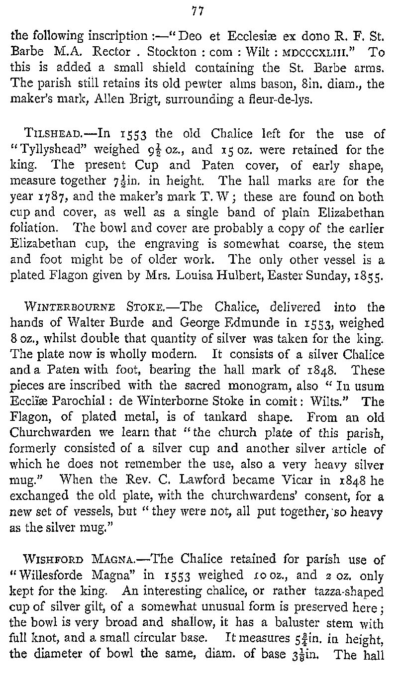 Page 108 Church plate in Stockton Church, Tilshead Church, Winterbourne Stoke Church and Great Wishford Church.