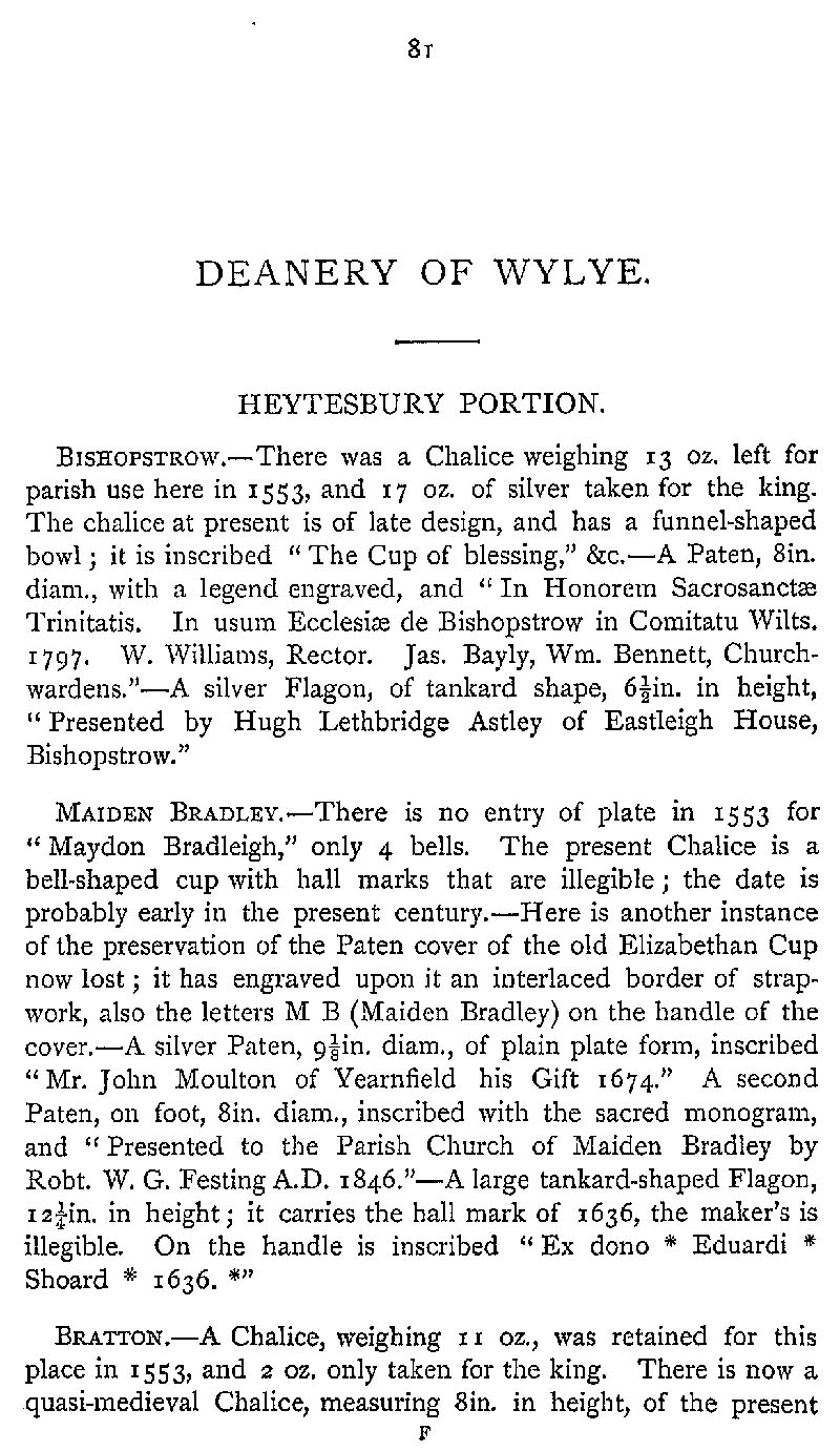 Page 114 Church plate in Bishoptrow Church, Maiden Bradley Church and Bratton Church.