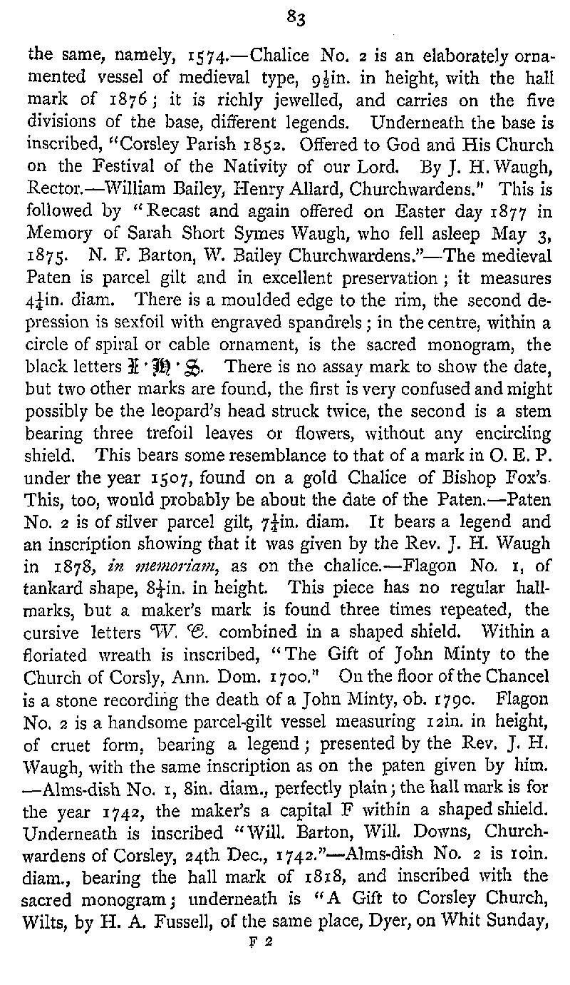 Page 117 Church Plate in Corsley Church.