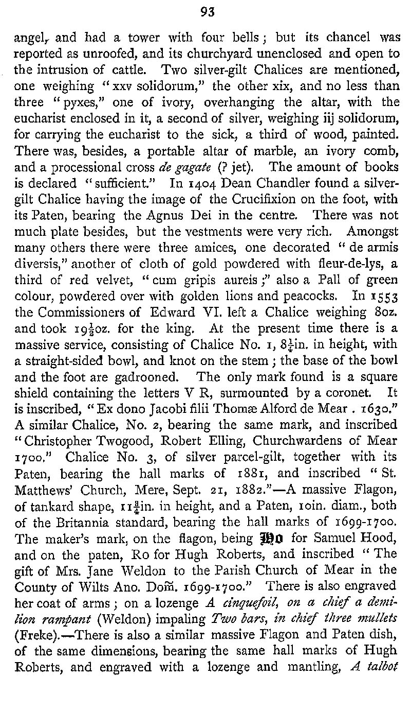 Page 127 Church Plate in Mere Church.