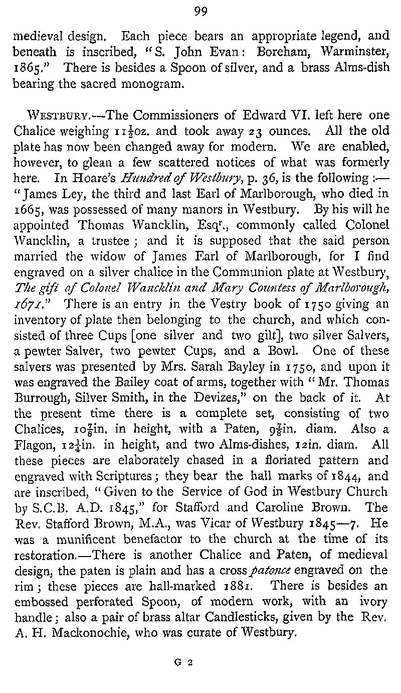 Page 133 Church Plate in Boreham Church, Warminster, and Westbury Church.