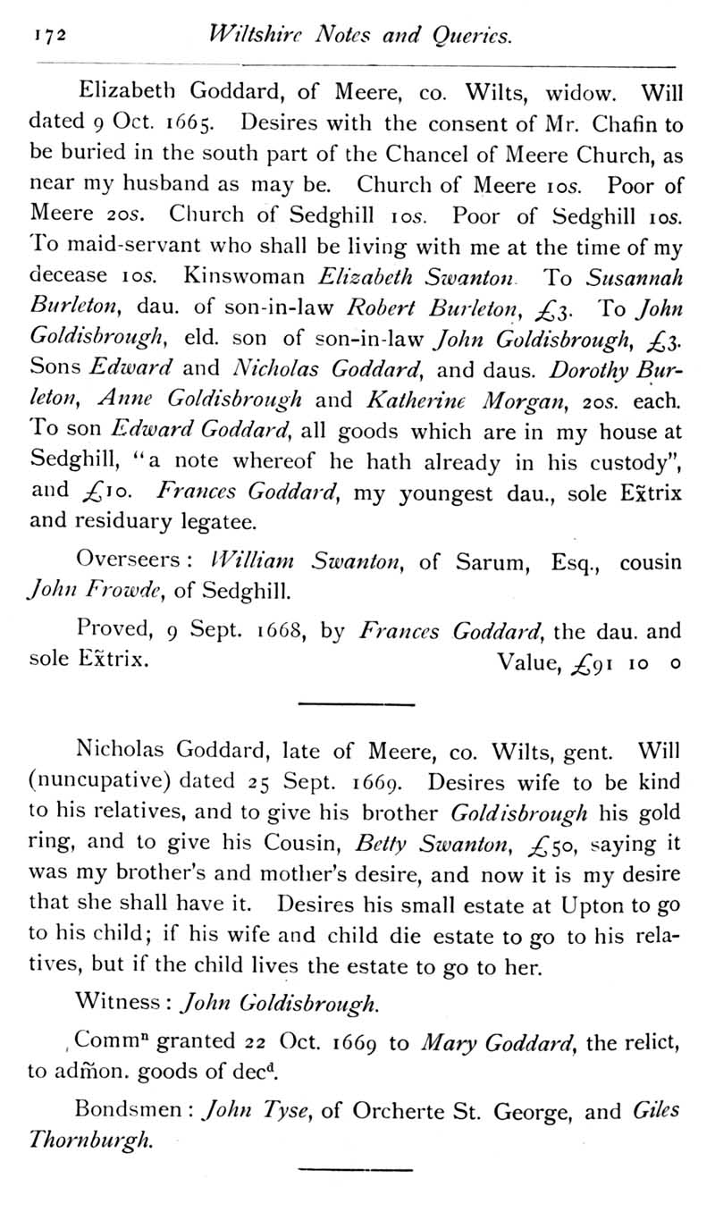 Chapter 5 Paul Bush, last rector of Edington, Bush Family; Feet of Fines for Wiltshire; Quakerism in Wiltshire; Horton Wills; Goddard of Sedgehill; Queries; Replies; Harris, Eyre and Dauntsey; Notes on Books; Review of The Genealogist Magazine.