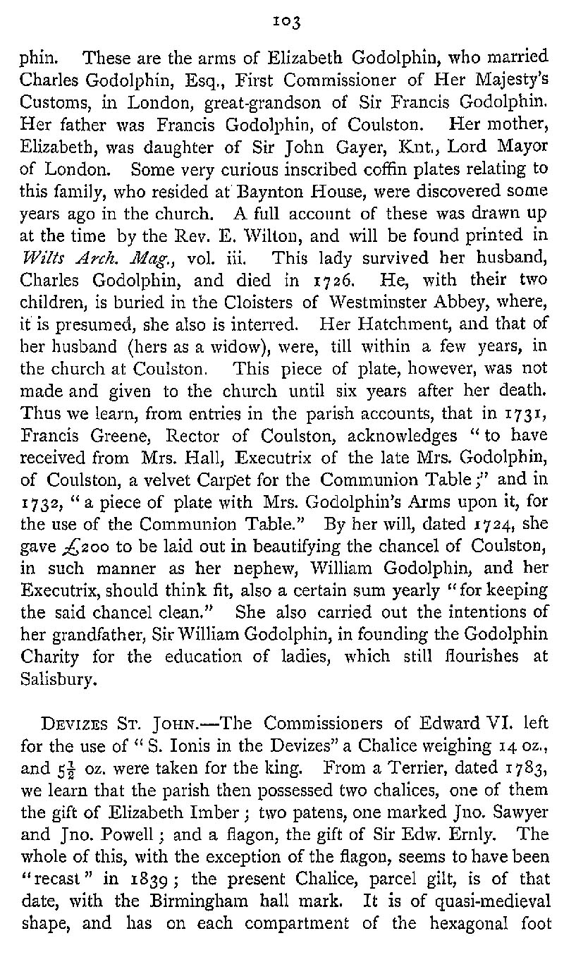 Page 137 Church Plate in Coulston Church, and St. John's Church, Devizes.
