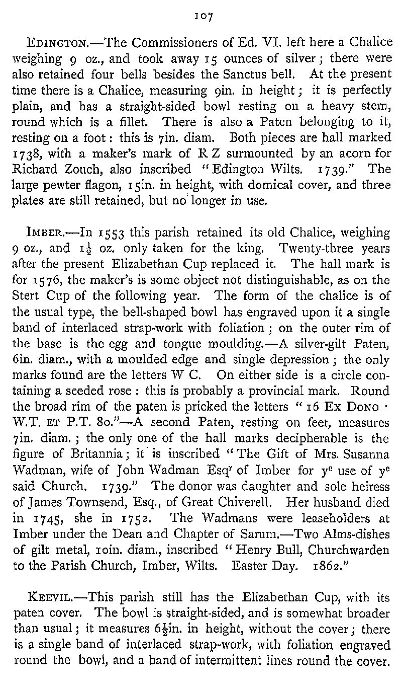 Page 141 Church Plate in Edington Church, Imber Church, and Keevil Church.