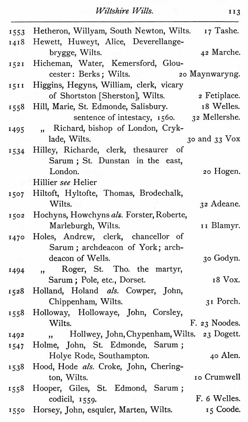 Page 15 Wiltshire Wills proved in the Prerogative Court of Canterbury 1383-1558.