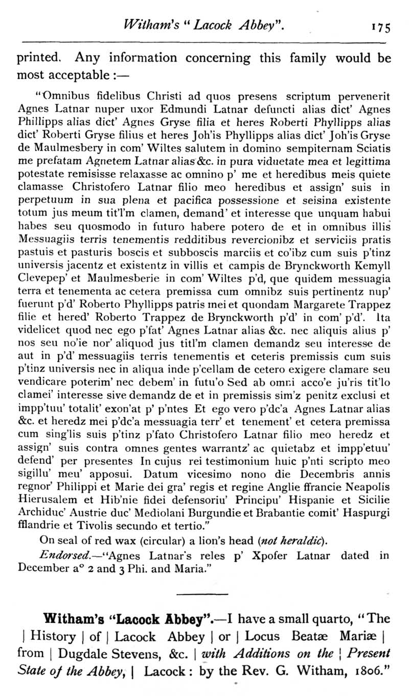 Page 32 Queries: Witham's Lacock Abbey
