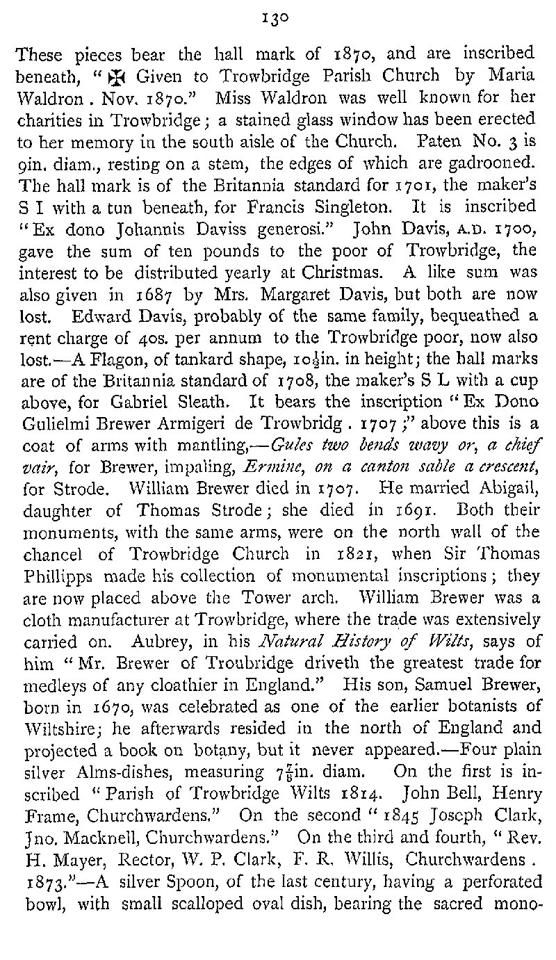 Page 166 Church plate inthe Church of St. James, Trowbridge.