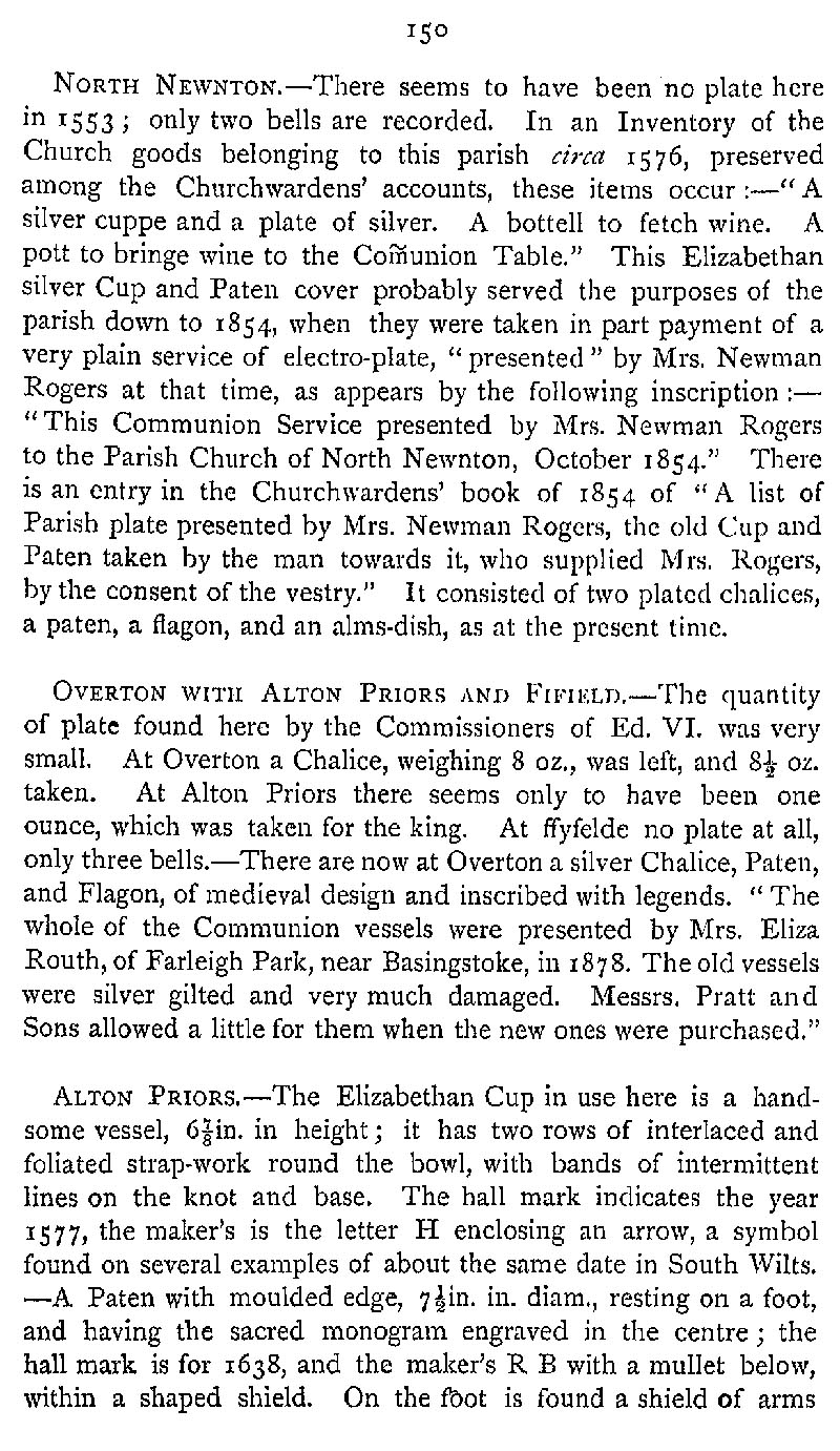 Page 188 Church plate in North Newnton Church, Overton Church, and Alton Priors Church.