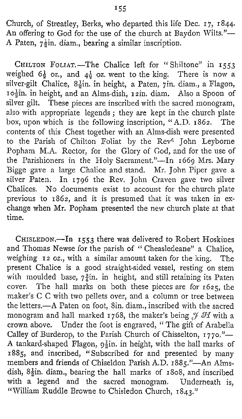Page 194 Church plate in Baydon Church, Chilton Foliat Church, and Chiseldon Church.