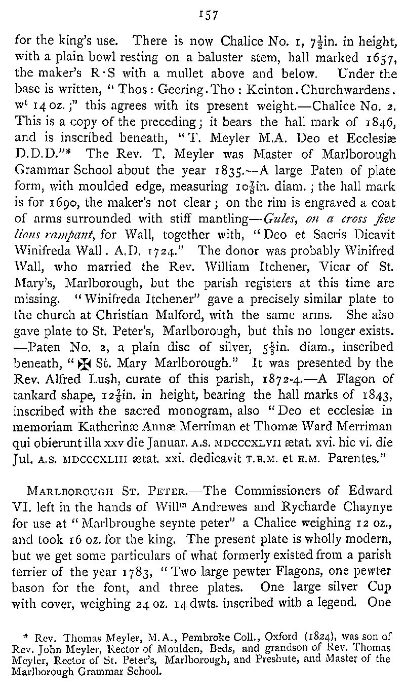 Page 197 Church plate in St. Mary's Church, Marlborough, and St. Peter's Church, Marlborough.<br />