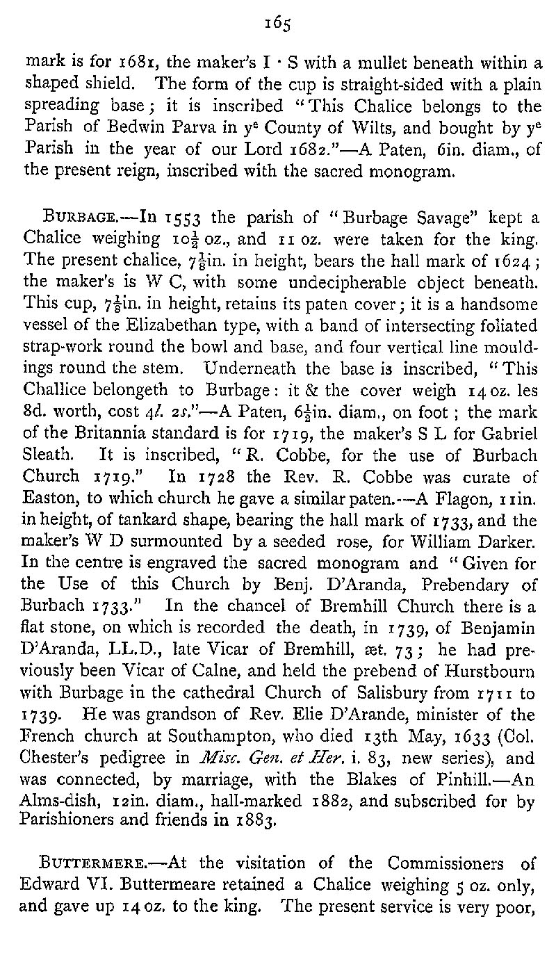 Page 205 Church plate in Little Bedwyn Church, Burbage Church, and Buttermere Church.