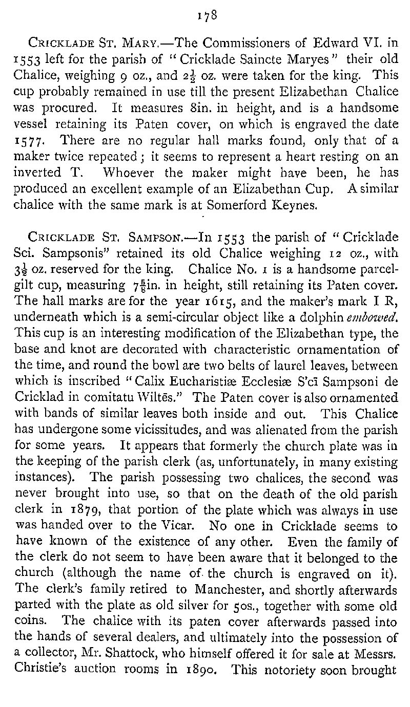 Page 219 Church plate in St. Mary's Church, Cricklade, and St. Sampson's Church, Cricklade.