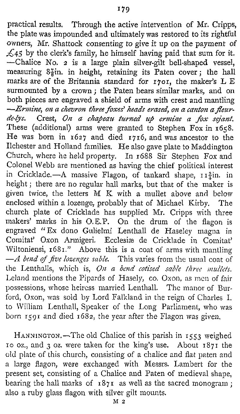 Page 221 Church plate in St. Sampson's Church, Cricklade, and Hannington Church.
