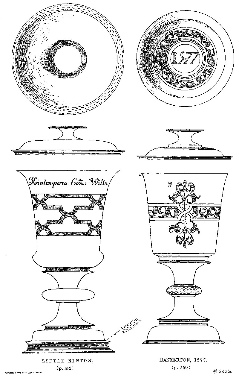 Page 226 Drawings of a chalice at Little Hinton Church and a chalice of 1577 at Hankerton Church.