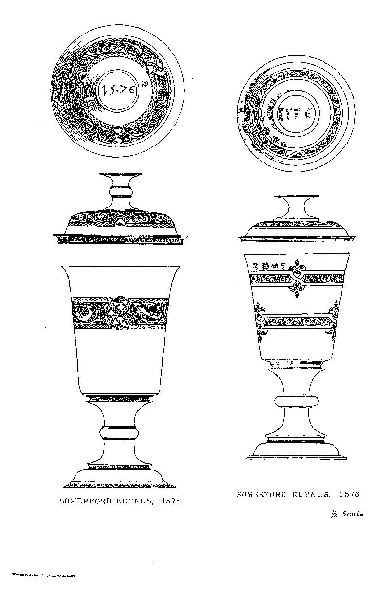 Page 233 Drawings of two chalices of 1576 in Somerford Keynes Church (now in Gloucestershire).