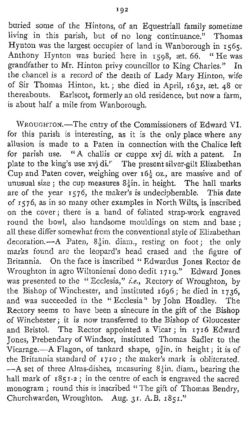 Page 237 Church plate in Wanborough Church, and Wroughton Church.