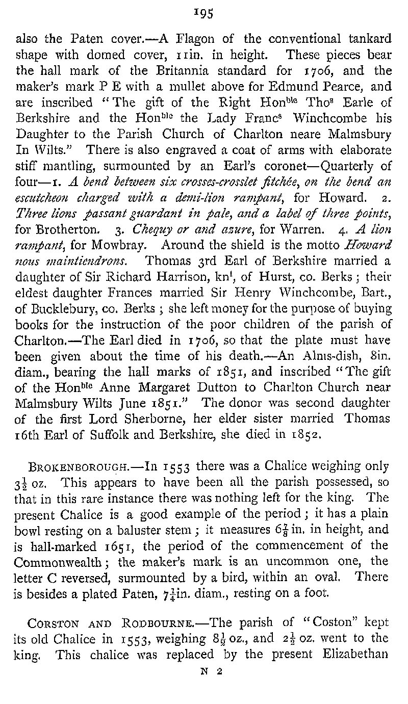 Page 240 Church plate in Charlton (north Wiltshire) Church, Brokenborough Church, and Corston and Rodbourne Churches.