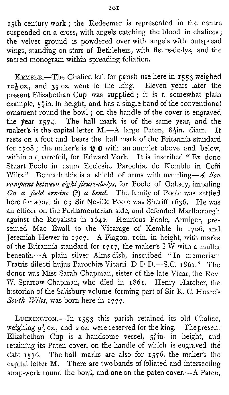 Page 246 Church plate in Hullavington Church, Kemble Church (now in Gloucestershire), and Luckington Church.