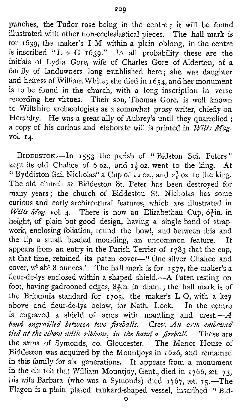 Page 254 Church plate in Alderton Church, and Biddestone Church.