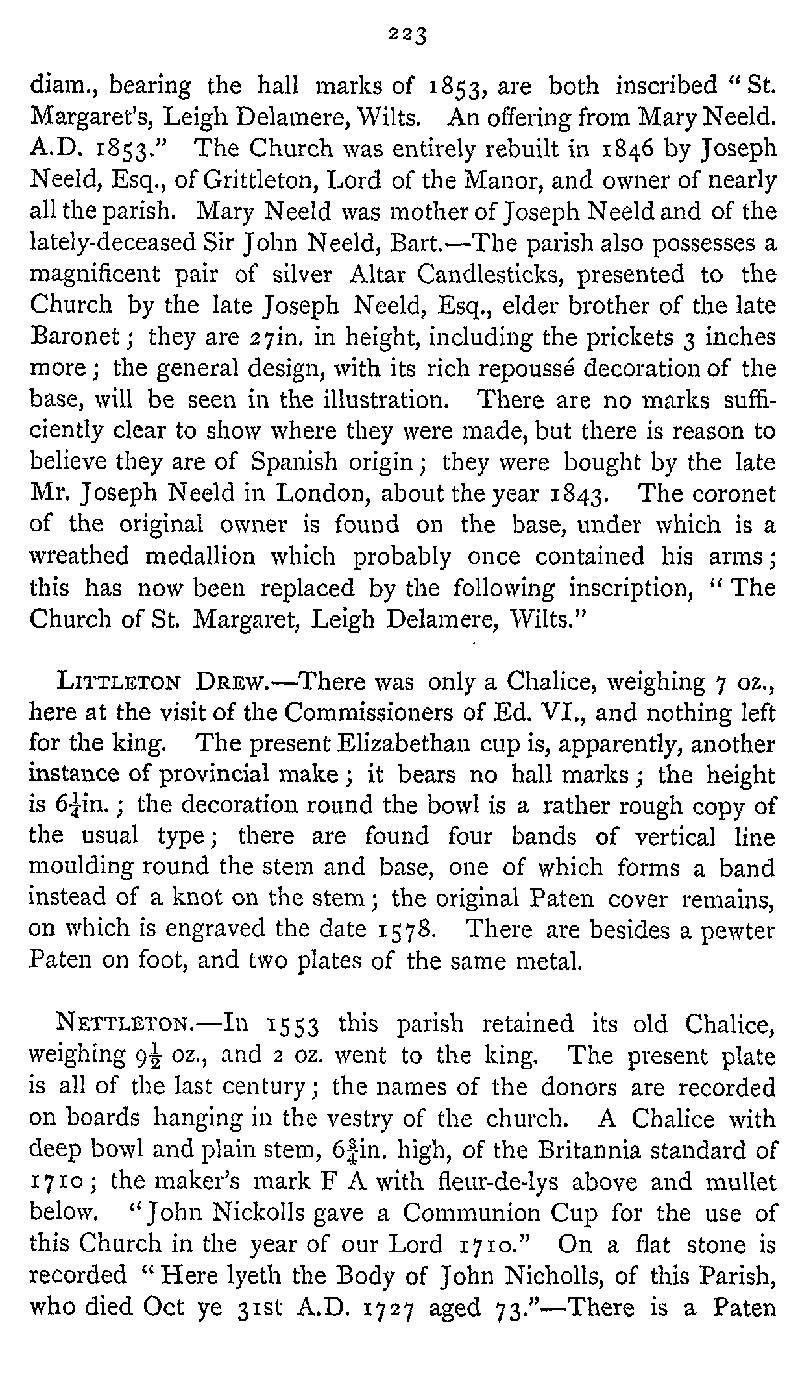Page 270 Church plate in Leigh Delamare Church, Littleton Drew Church (Grittleton) and Nettleton Church.