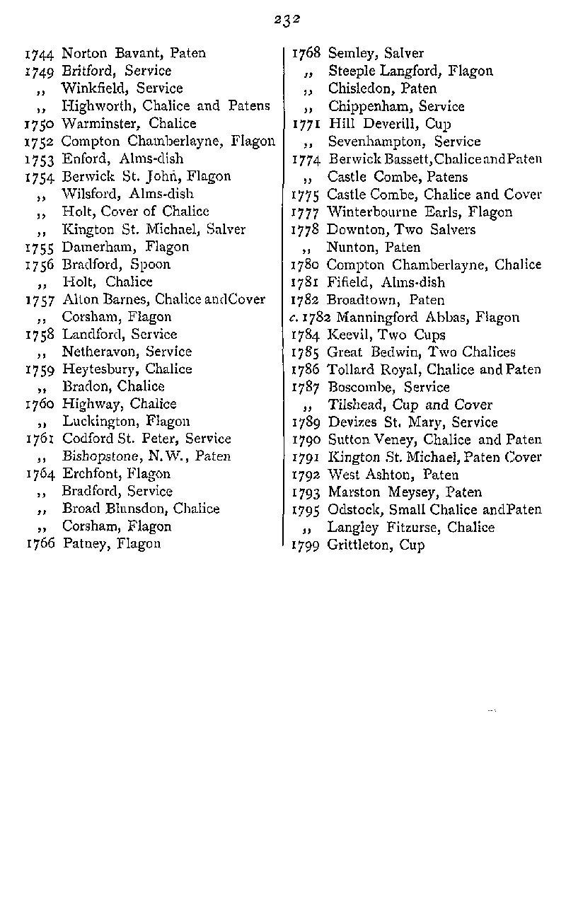 Page 6 List of Wiltshire church plate from 1744 t0 1799.