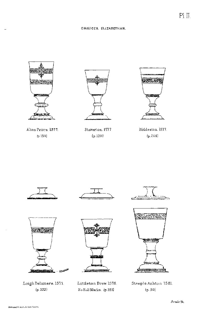 Page 2 Drawings of Elizabethan chalices from Alton Priors, Staverton, Biddestone, Leigh Delamare, Littleton Drew, and Steeple Ashton.