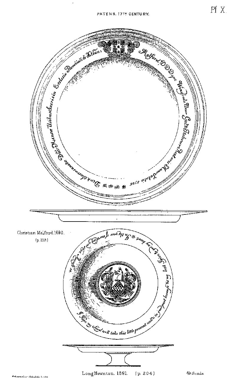 Page 10 Drawings of 17th century patens from Christian Malford and Long Newnton.