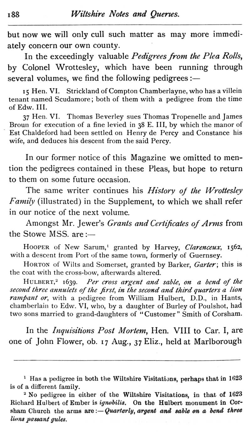 Chapter 5 Paul Bush, last rector of Edington, Bush Family; Feet of Fines for Wiltshire; Quakerism in Wiltshire; Horton Wills; Goddard of Sedgehill; Queries; Replies; Harris, Eyre and Dauntsey; Notes on Books; Review of The Genealogist Magazine.