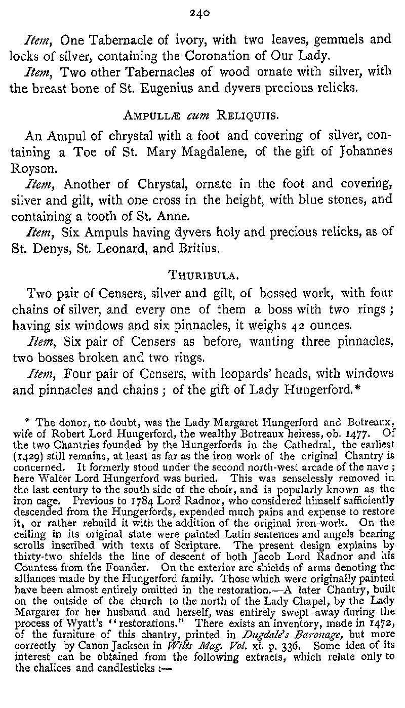 Page 8 Register and inventory of the jewels and riches belonging to the Cathedral Church of Sarum [Salisbury],made by Thomas Robertson, 1536.