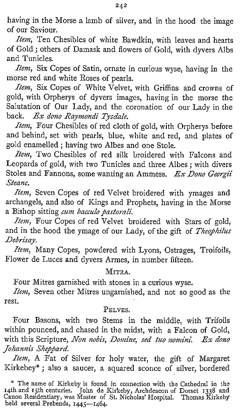 Page 10 Register and inventory of the jewels and riches belonging to the Cathedral Church of Sarum [Salisbury],made by Thomas Robertson, 1536.