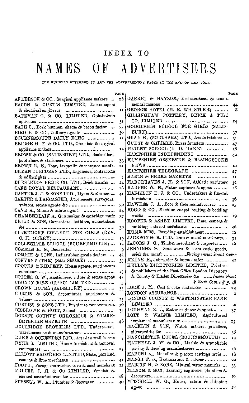 Page 11 List of advertisers, from Anderson & Co. to Mitchell, W.G.