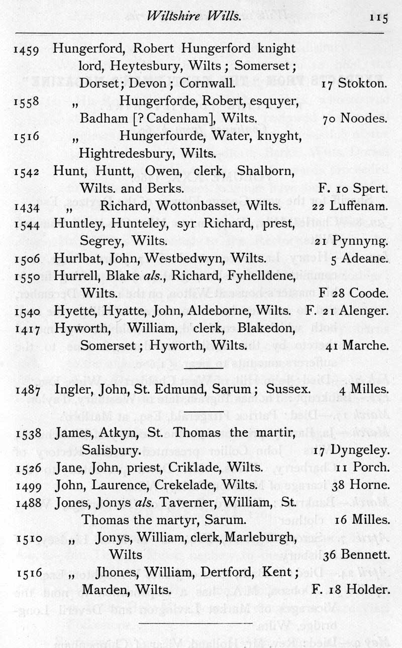 Page 17 Wiltshire Wills proved in the Prerogative Court of Canterbury 1383-1558.