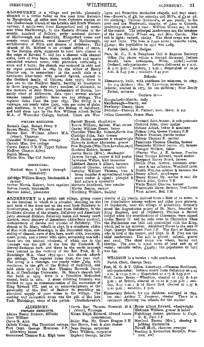 Page 1 Description and residents of Aldbourne and Alderbury.