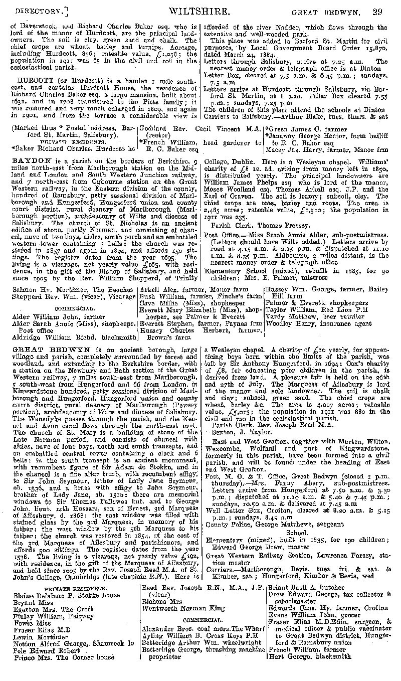 Page 9 Description and residents of Baverstock, Baydon, and Great Bedwyn.