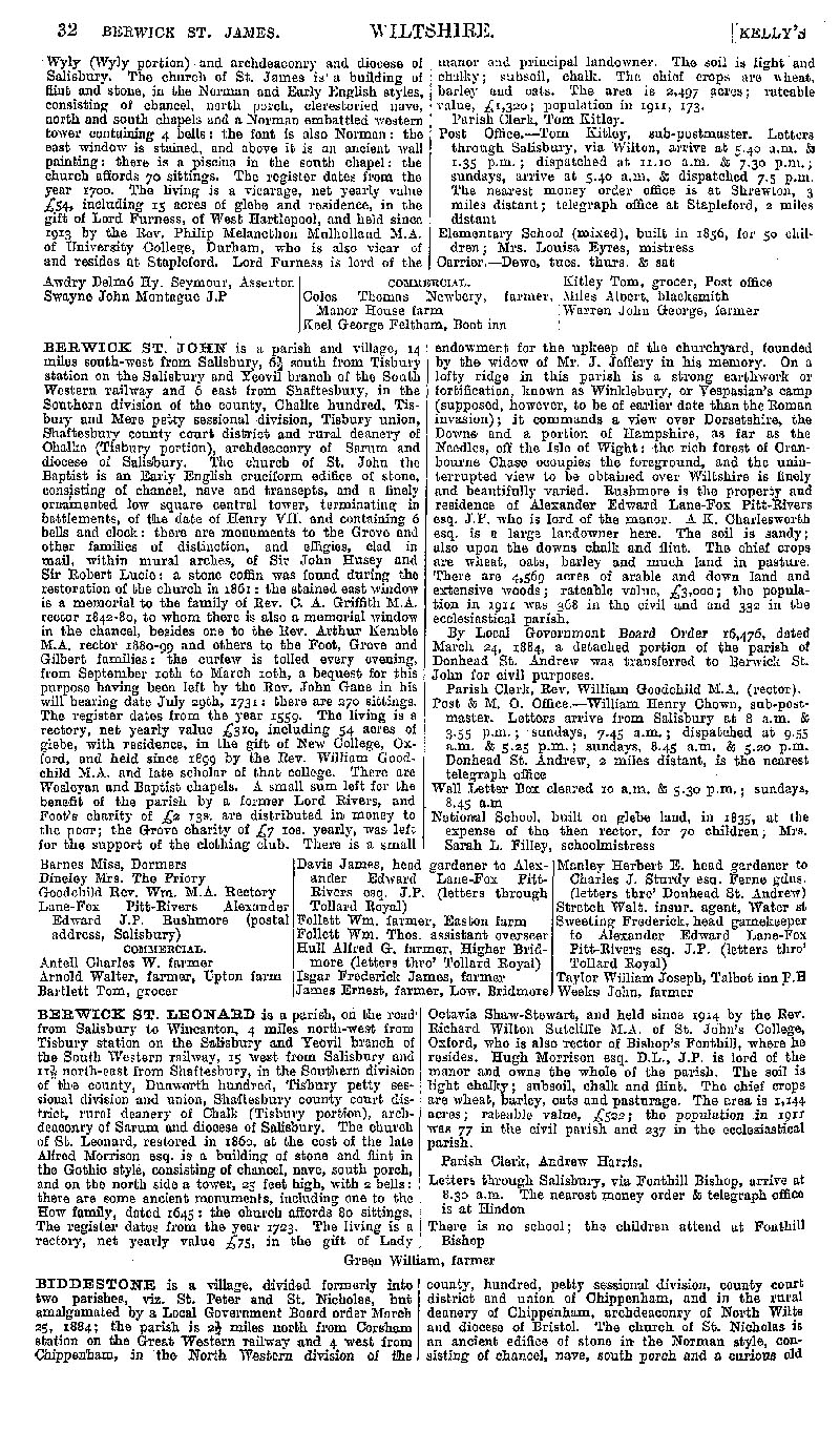 Page 12 Description and residents of Berwick St. James, Berwick St. John, Berwick St. Leonard, and Biddestone.